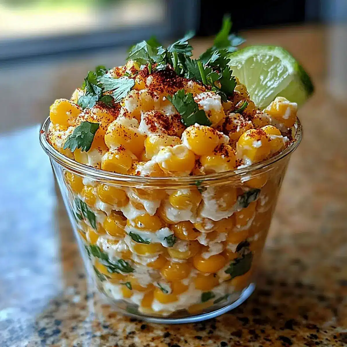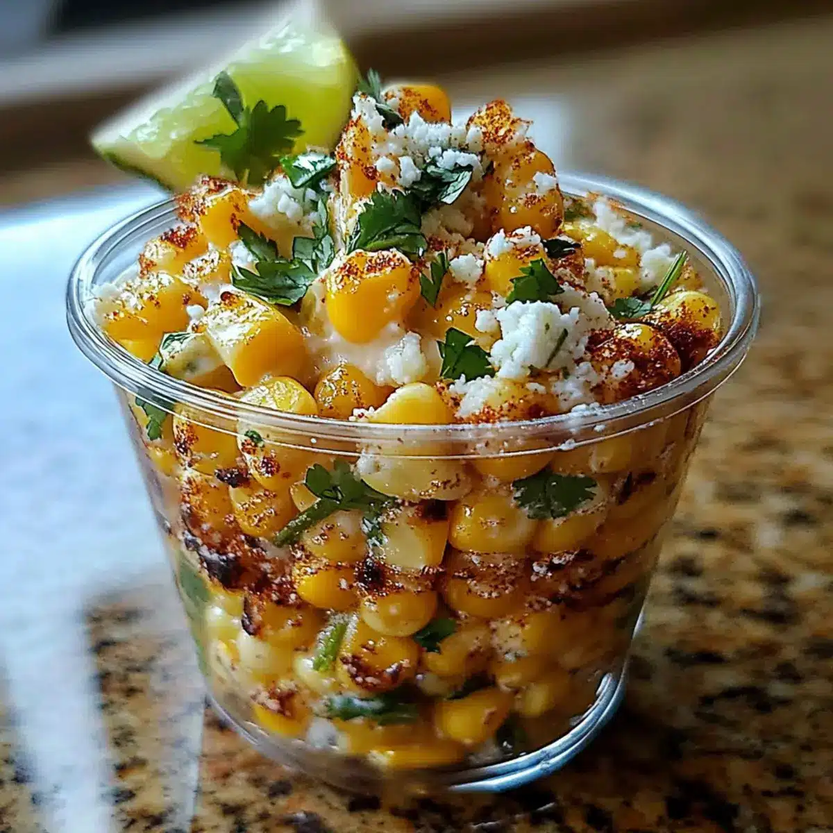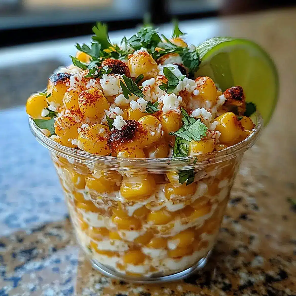 Spoon generous portions of the corn mixture into clear individual cups for a vibrant presentation. Garnish each cup with extra crumbled cotija cheese, a sprinkle of chili powder, and a few fresh cilantro leaves. Include lime wedges on the side to enhance the zesty experience of your Amazing Elote Cups.