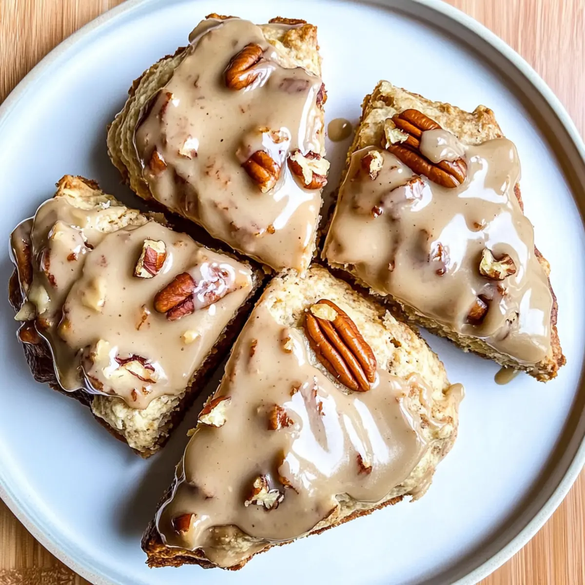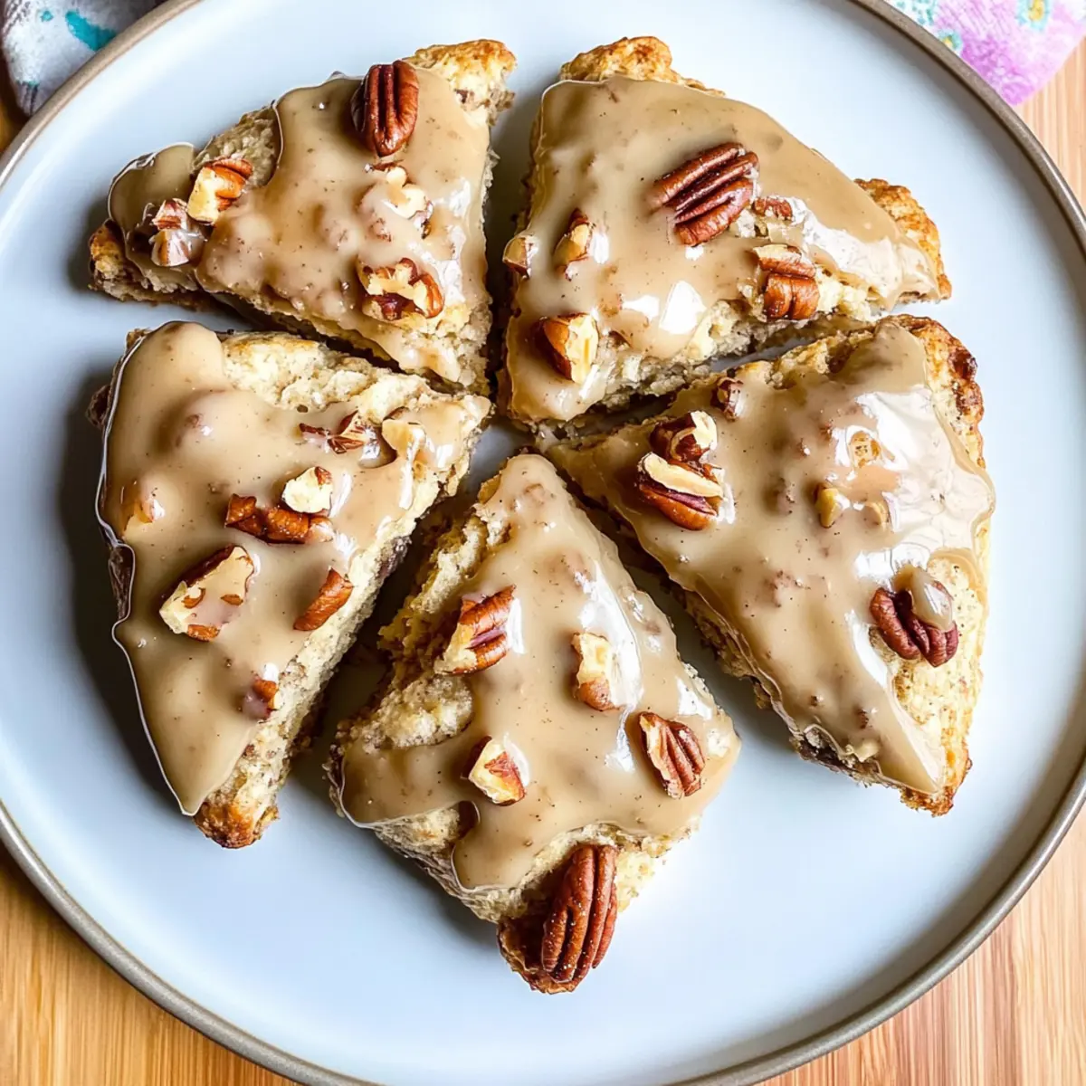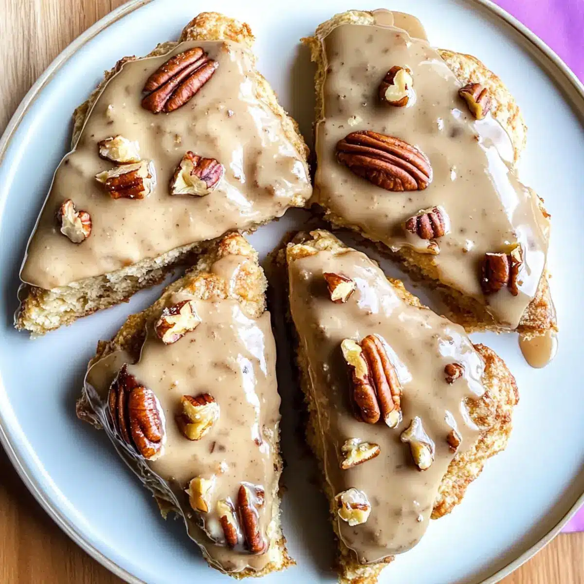- Drizzle the glaze over cooled scones, sprinkle with additional chopped pecans if desired.