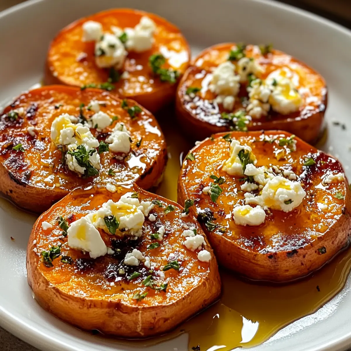 Sweet and Savory Roasted Sweet Potato Rounds with Honey & Feta
