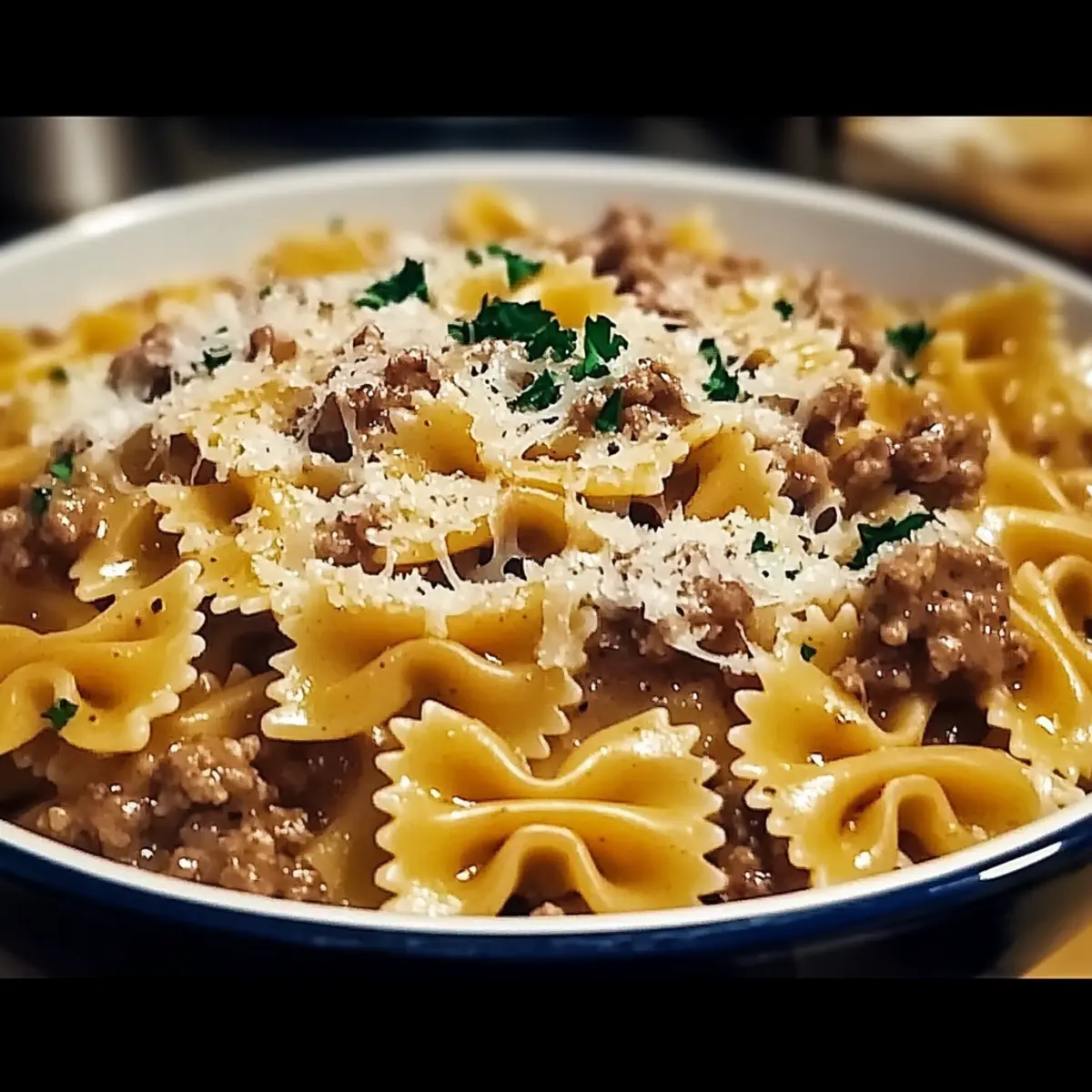 Creamy Garlic Parmesan Bowtie Pasta with Beef Bliss Recipe