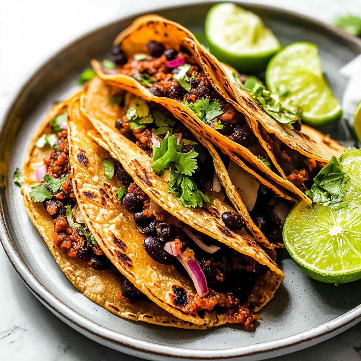 As the sun dipped below the horizon, my kitchen filled with the irresistible aroma of smoky spices and sizzling onions. That’s when I realized it was time to whip up a batch of Crispy Black Bean Tacos, my go-to quick vegetarian delight. These tacos perfectly blend crunchy baked tortillas with the heartiness of black beans, making them a satisfying weeknight meal for everyone at the table. Packed with flavor, they’re not only a feast for your taste buds but also a fantastic way to utilize pantry staples. Plus, they can easily be tailored to fit dietary preferences, whether you’re vegan or simply seeking something wholesome. So, how about we dive into this delicious recipe and bring some vibrant energy to your next dinner?