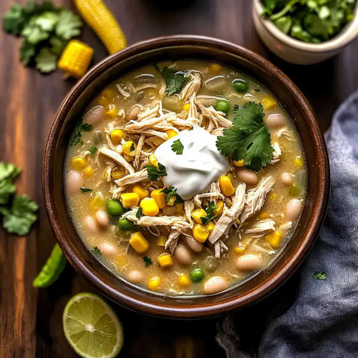 The aroma of spicy, savory soup wafts through my home, instantly transporting me to cozy evenings wrapped in a blanket. Let me introduce you to my go-to comfort dish: Flavorful Crockpot White Chicken Chili Soup. This delightful recipe combines tender chicken and a lively blend of spices into a healthy, protein-rich meal ideal for busy weeknights. The best part? You can prep it in minutes and let your crockpot do all the work! With every spoonful, you’ll experience warmth and creaminess without the heaviness that often accompanies traditional chilis. Not only is this soup a fantastic crowd-pleaser, but it also makes for excellent meal prep—just store the leftovers in the fridge or freezer for another day. Ready to dive into this cozy bowl of goodness? Let’s get started!