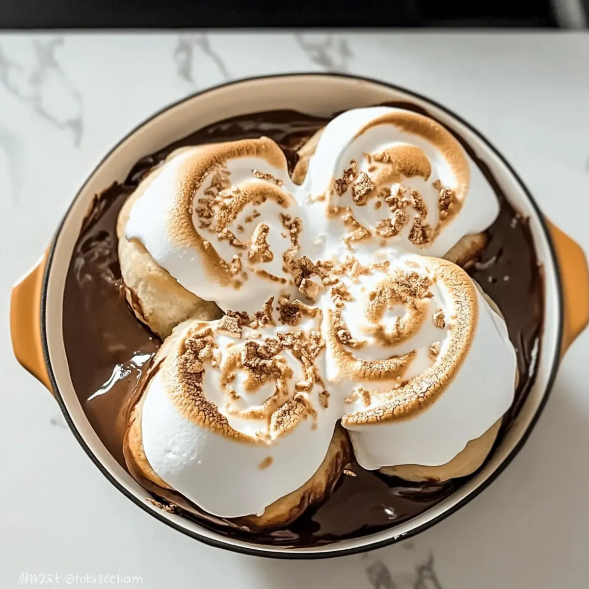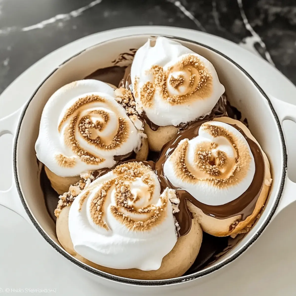 Once the rolls have cooled, generously spread the meringue on top of each roll. If you have a kitchen torch, lightly toast the meringue until it’s golden brown and slightly crispy. Alternatively, you can place the rolls under a broiler for a minute or two, keeping a close watch to prevent burning. Serve your decadent Gooey S’mores Rolls warm for the best indulgence!