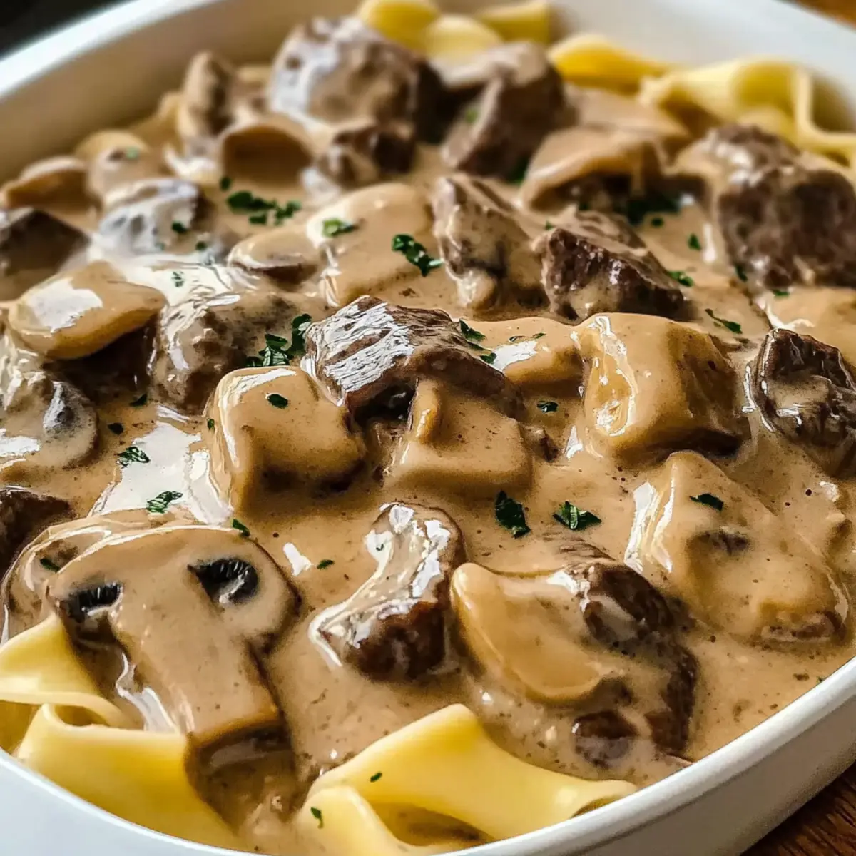 Herb Power: Infuse fresh herbs, like thyme or parsley, for a burst of freshness. Stir them in just before serving to brighten the rich flavors of the stroganoff.