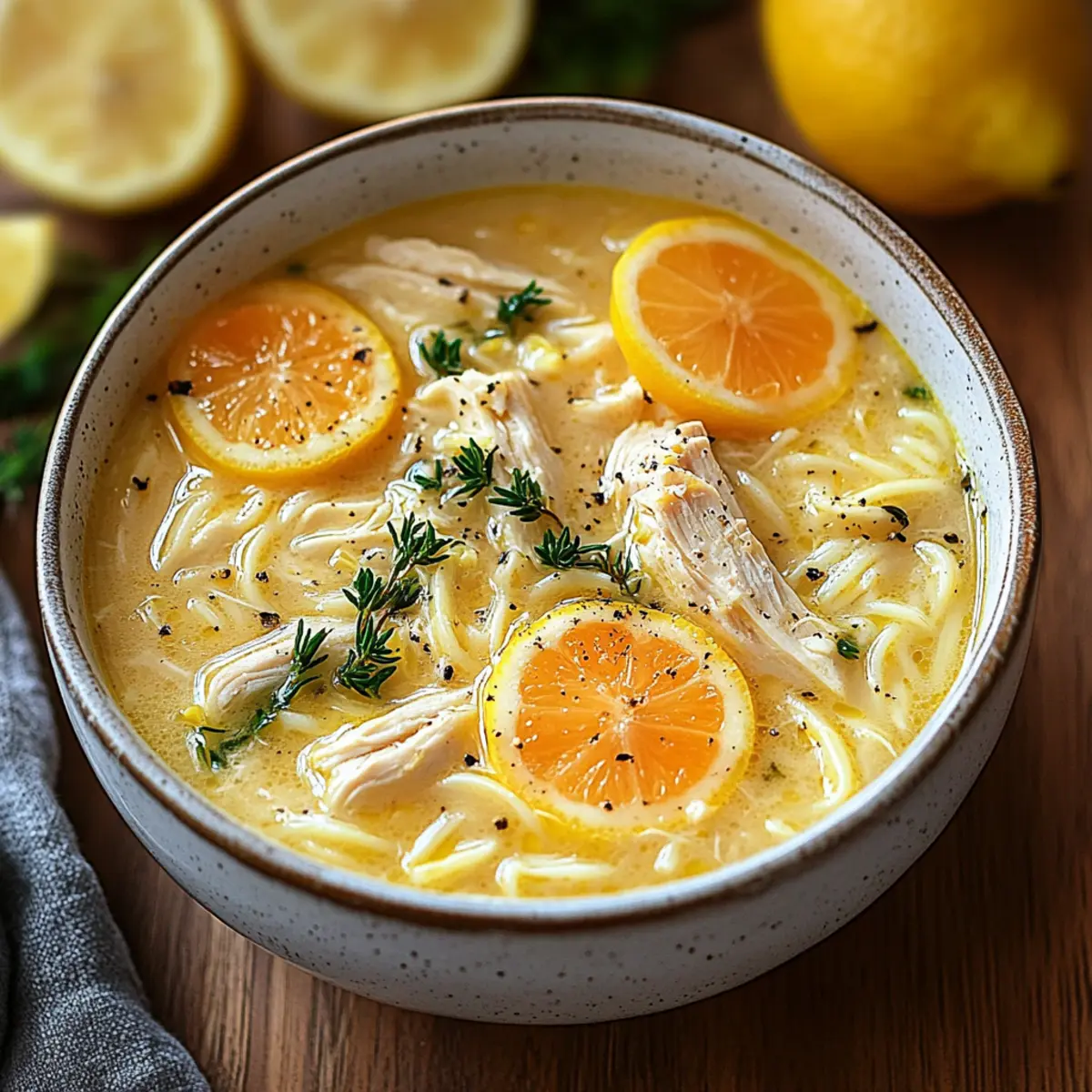 Ladle the creamy Greek Lemon Chicken Soup into bowls and garnish with fresh lemon slices and optional herbs like dill or parsley. This finishing touch enhances both the visual appeal and flavor of the soup. Each bowl is sure to evoke the sunny flavors of the Mediterranean, inviting everyone to enjoy a delightful and comforting meal.