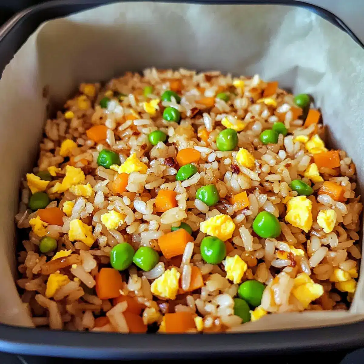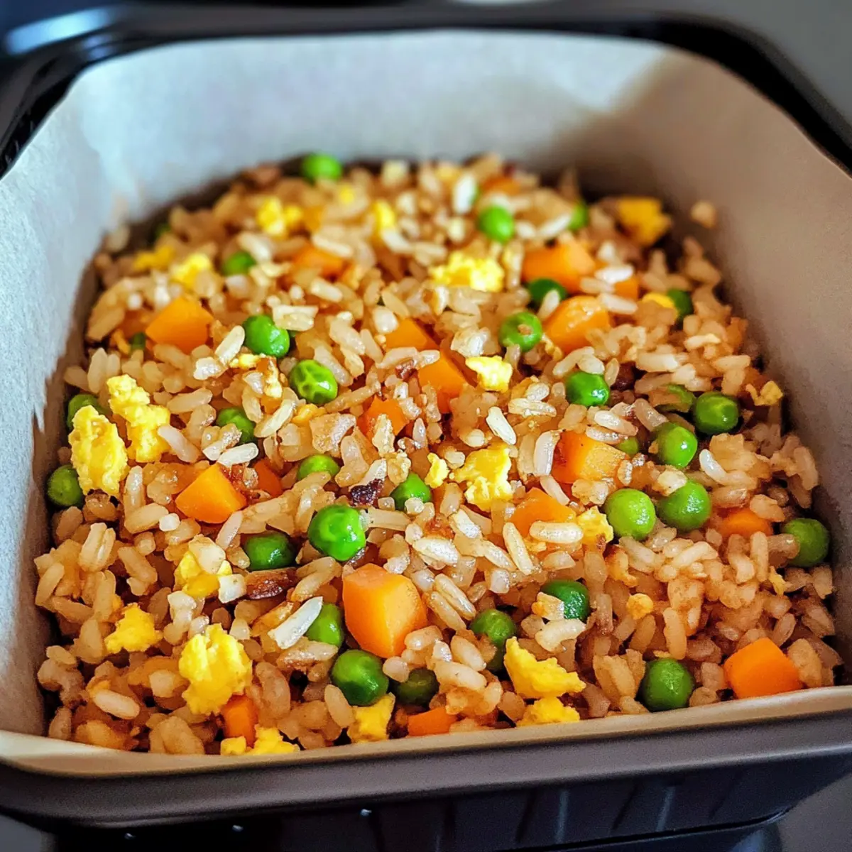 Reheating: When ready to enjoy, reheat your Irresistible Air Fryer Fried Rice in the air fryer at 350°F (175°C) for about 5-7 minutes, or until warmed through. Stir halfway for even heating.