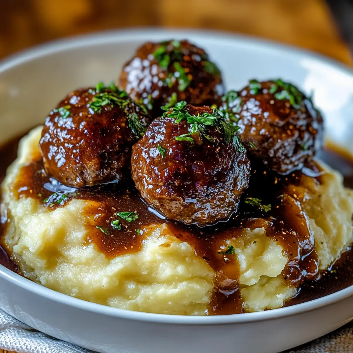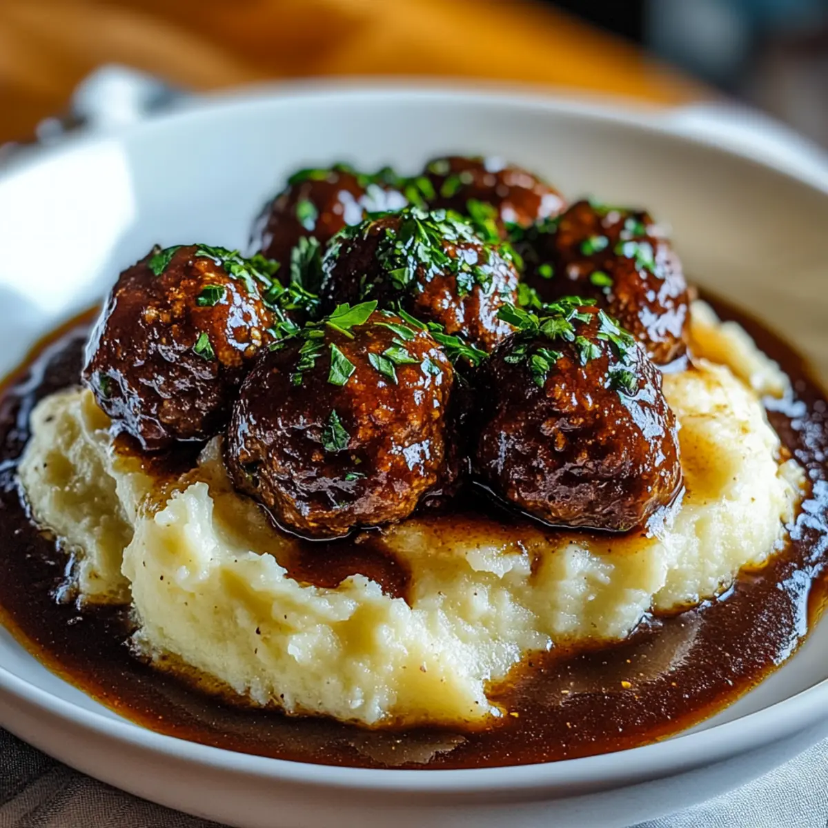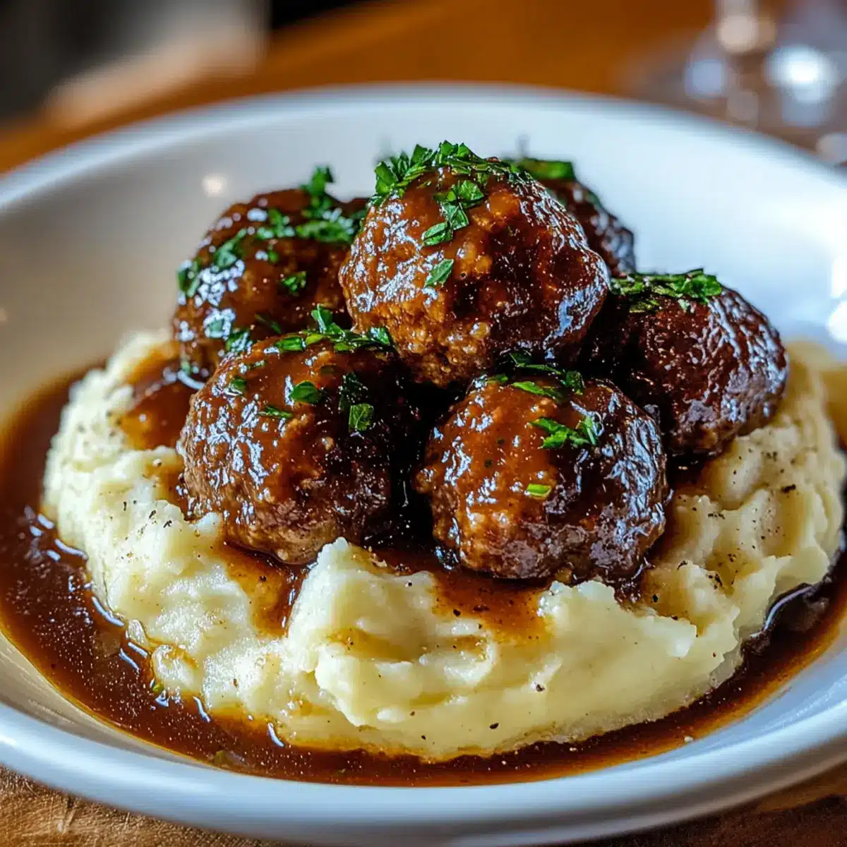 Savor Salisbury Steak Meatballs with Creamy Garlic Mashed Potatoes