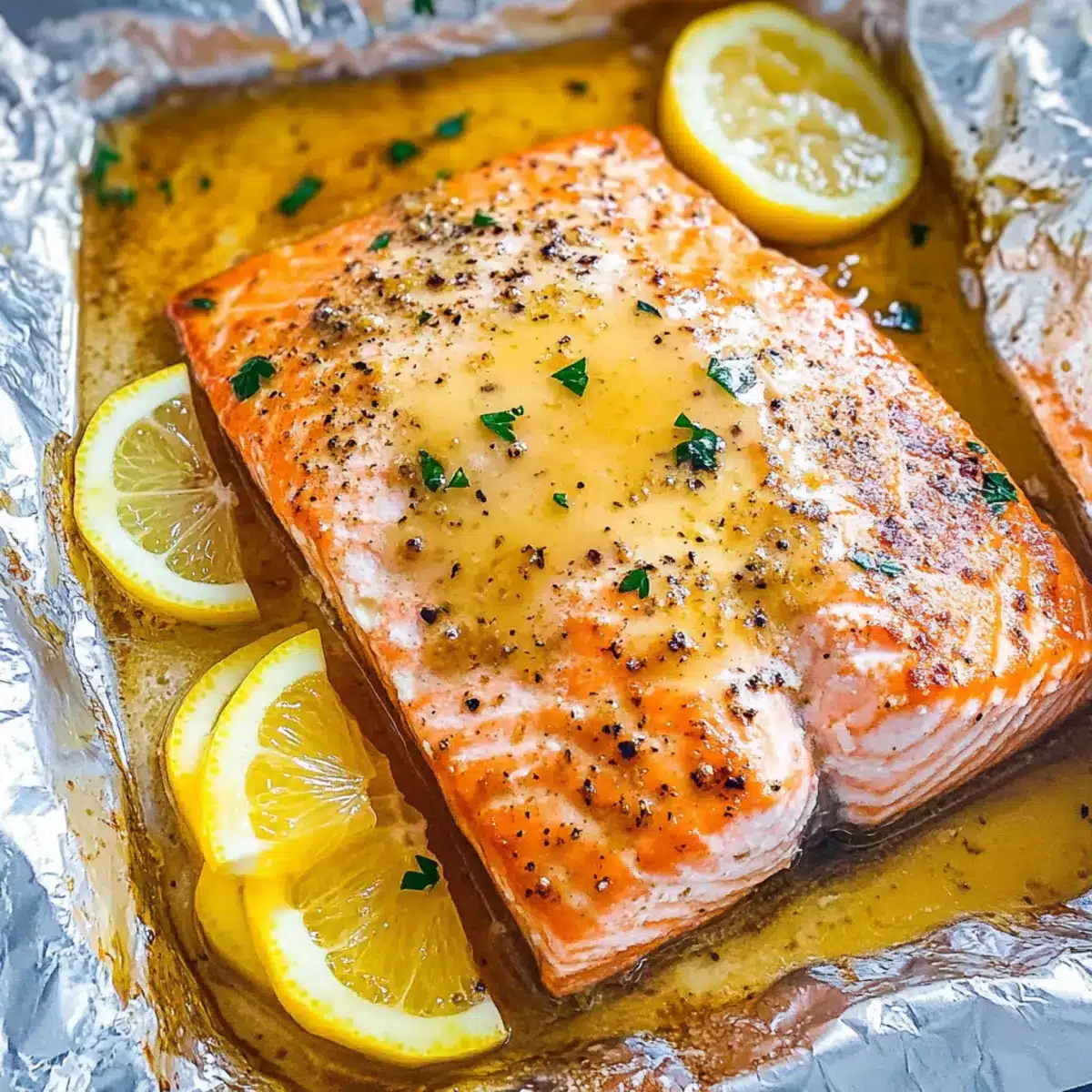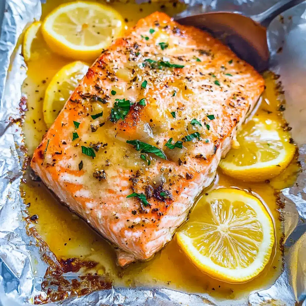Layer several fresh lemon slices directly underneath the salmon on the foil. These slices will infuse the salmon with tangy flavor as it bakes, enhancing the overall taste of your dish. Arrange them evenly to cover the base, allowing each bite to be bursting with zesty lemon goodness.