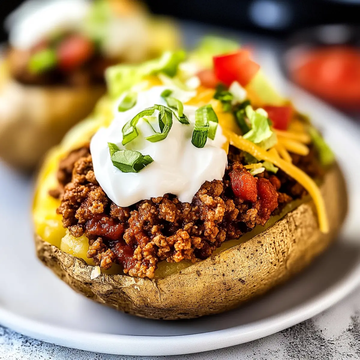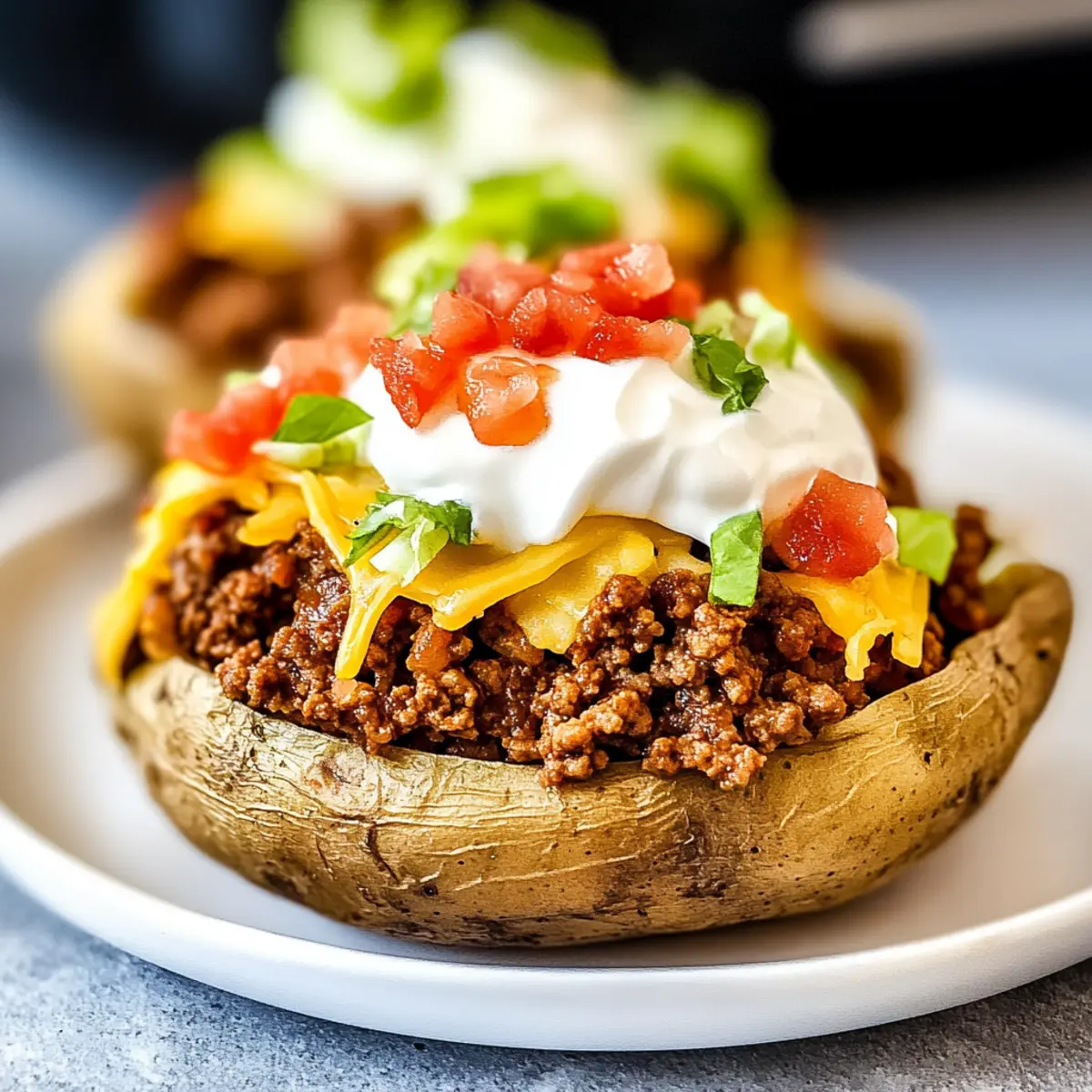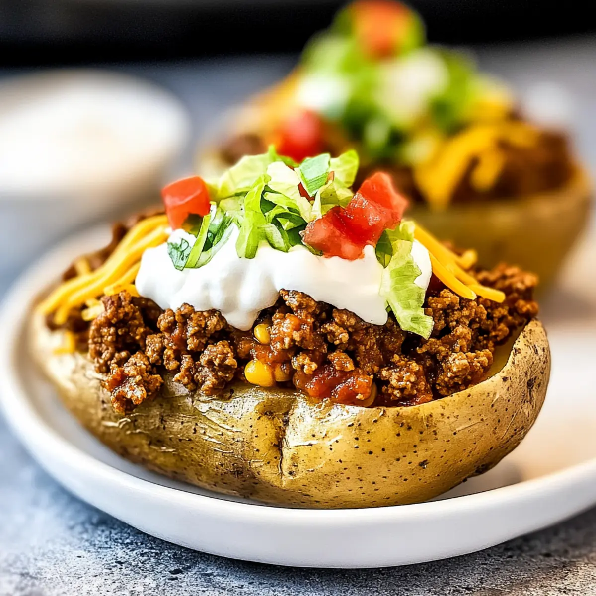 These Taco Potatoes are perfect for meal prep enthusiasts looking to save time during busy evenings! You can bake the potatoes up to 24 hours in advance; simply let them cool, wrap them tightly, and refrigerate. The ground beef can also be cooked and seasoned ahead of time, storing it in an airtight container for up to 3 days. When you’re ready to serve, reheat the potatoes in the oven at 350°F (175°C) for about 15-20 minutes, and warm the ground beef on the stove or in the microwave. Top with your favorite fresh ingredients just before serving to ensure they remain crisp and vibrant. With these make-ahead options, you’ll enjoy delicious Taco Potatoes with minimal effort on the day of!